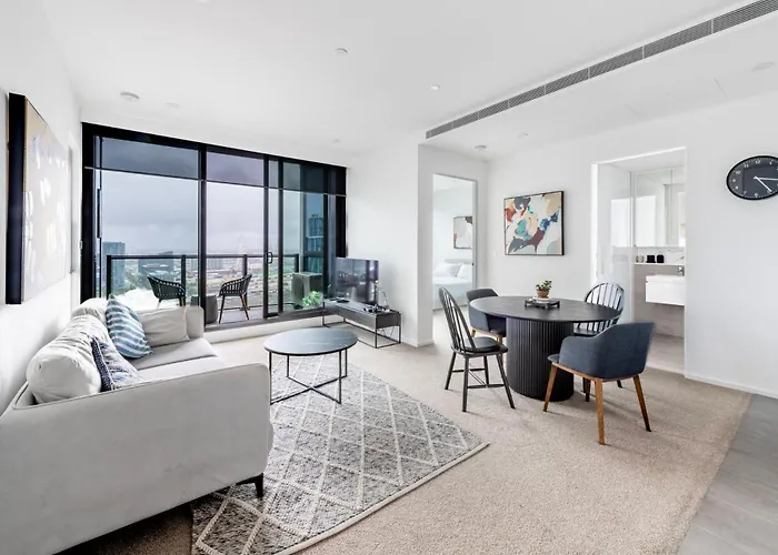 L'appartement City Lights & Cozy Nights 2Br Retreat With A View, situé dans le quartier "West Melbourne" à Ville de Melbourne, se trouve près de la Salle de concert Festival Hall.